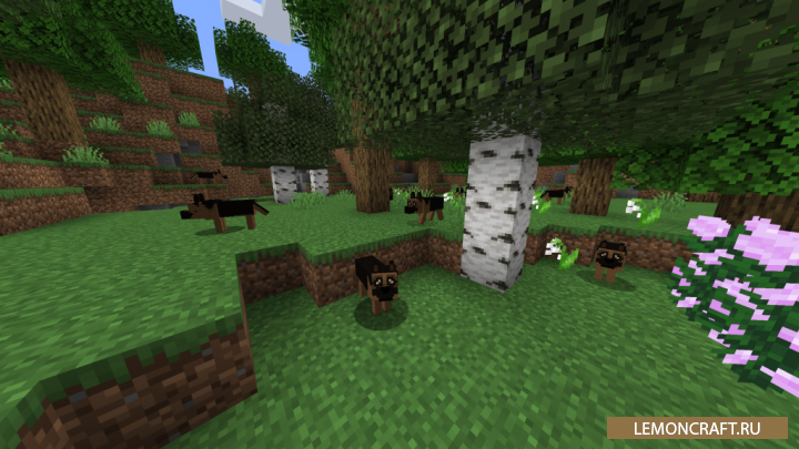 Мод на новых собак More Dogs добавляет в игру новые породы собак, которые существуют в реальном мире. На данный момент мод добавляет три породы: чихухуа, немецкая овчарка, хаски. Чихухуа вы сможете увидеть только в пустынных биомах, немецкую овчарку в лесах, а хаски только в биомах с отрицательной температурой. Приручить данных собак не составит особого труда, для этого вам понадобятся кости. Хвост у данных животных показывает их состояние здоровья, чем ниже он опущен тем меньше у них ХП. Для восстановления здоровья вашим питомцам потребуется мясо.