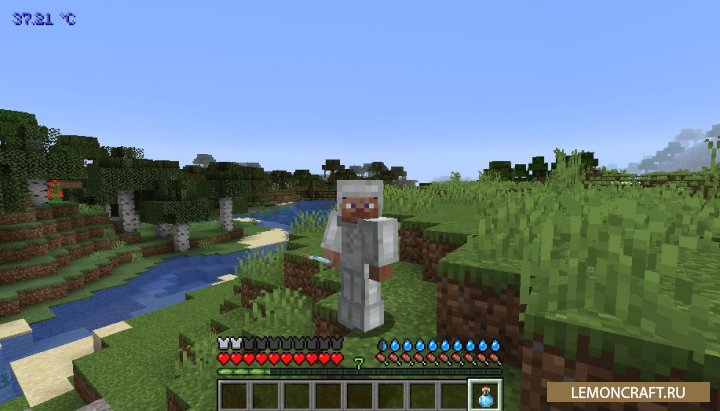 Мод на жажду и температуру Survive добавит в игру два новых понятия: температуру и жажду, что придаст игре больше реалистичности. Для сохранения температуры тела на нужных 36.6 градусах вы сможете использовать шерстяной сет, а что бы не умереть от обезвоживания постоянно употребляйте очищенную воду.