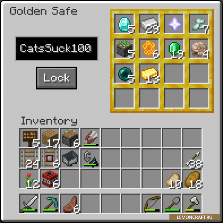 Мод на сейф Numerical добавляет в игру возможность хранить ваши предметы в безопасном, многофункциональном сейфе. Вы сможете создать сейф с карточкой-ключом, сейф с паролем и личный сейф, на котором будет установлен биометрический замок. Каждый из сейфом вы можете модернизировать, это увеличит их вместимость.