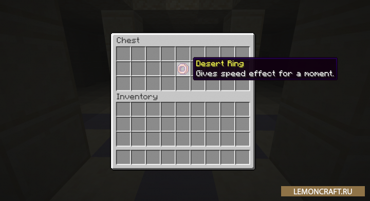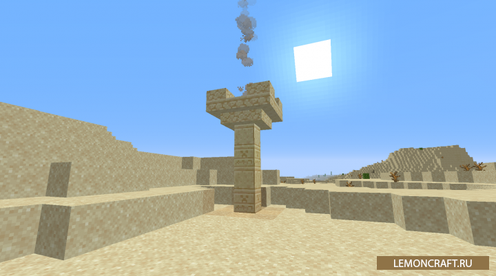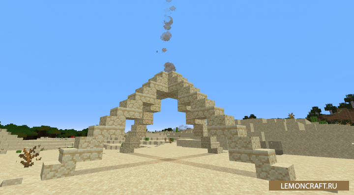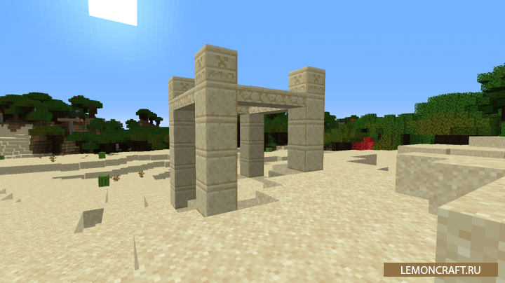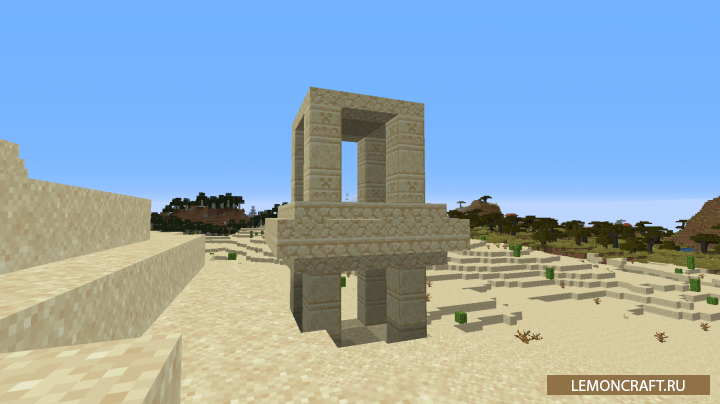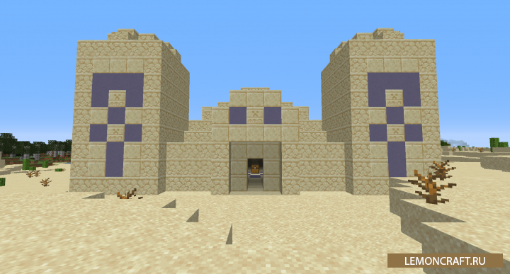 Мод на древние постройки Ancient Structures добавляет в игру новые структуры для пустынь, которые сделают этот биом более жизненным и интересным. Так же в древнем храме вы сможете обнаружить кольцо пустыни, которое сможет вас ускорить, правда на небольшой промежуток времени.